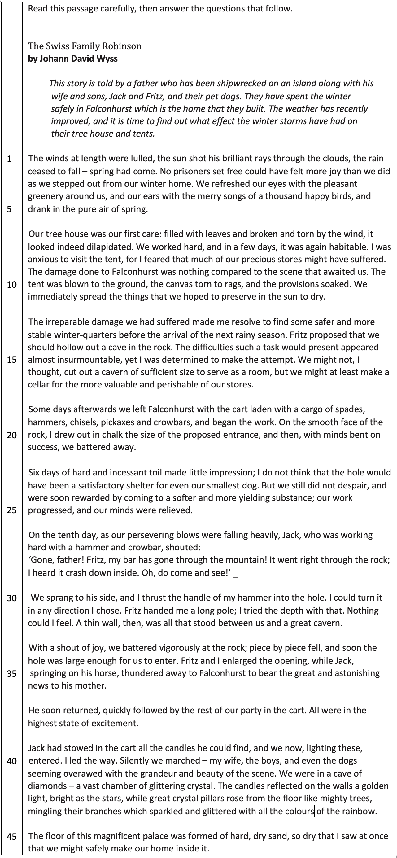 Click this link to open ‘Comprehension A – The Swiss Family Robinson’.